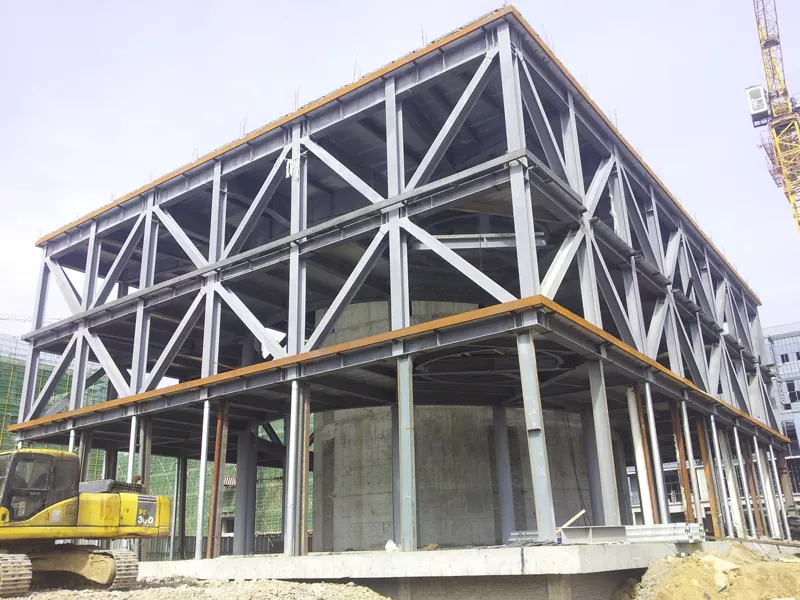 Κυρίως αποτελούμενες από χαλύβδινες στήλες, χαλύβδινους δοκούς, χαλύβδινα τιράντες κ.λπ., που συναρμολογούνται σε δομή πλαισίου μέσω συγκόλλησης, βιδωτών συνδέσεων κ.λπ.