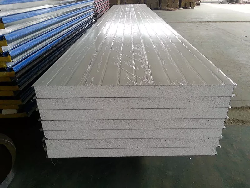 Το πάνελ σάντουιτς EPS αποτελείται από δύο εξωτερικά στρώματα, συνήθως κατασκευασμένα από χάλυβα ή αλουμίνιο, που στριμώχνουν τον πυρήνα του EPS. Τα μεταλλικά στρώματα παρέχουν αντοχή και ανθεκτικότητα, προστατεύοντας τον πυρήνα EPS από ζημιές και διασφαλίζοντας τη δομική ακεραιότητα του πάνελ. Ο συνδυασμός του πυρήνα EPS και των μεταλλικών στρωμάτων δημιουργεί ένα ισχυρό, ελαφρύ και ενεργειακά αποδοτικό πάνελ που είναι εύκολο στην εγκατάσταση και τη συντήρηση.