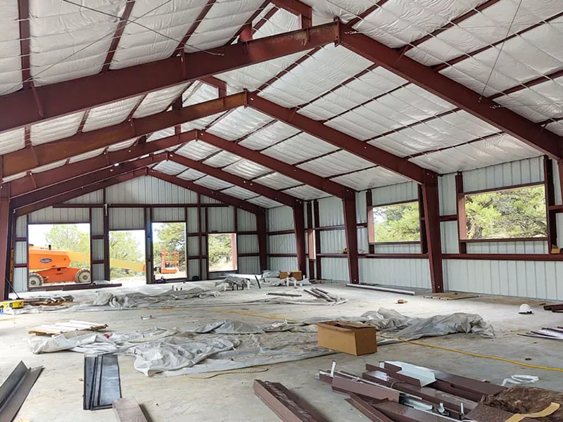 Κατασκευή δομής χάλυβα:Τα συστατικά χάλυβα, συμπεριλαμβανομένων των δοκών, των κολώνων, των τιράντες και των δοκών οροφής, προετοιμάζονται σε εργοστάσιο χρησιμοποιώντας χάλυβα υψηλής ποιότητας. Αυτά τα εξαρτήματα κατασκευάζονται σε ακριβείς προδιαγραφές για να εξασφαλίσουν ότι ταιριάζουν μαζί με ακρίβεια κατά τη διάρκεια της εγκατάστασης.