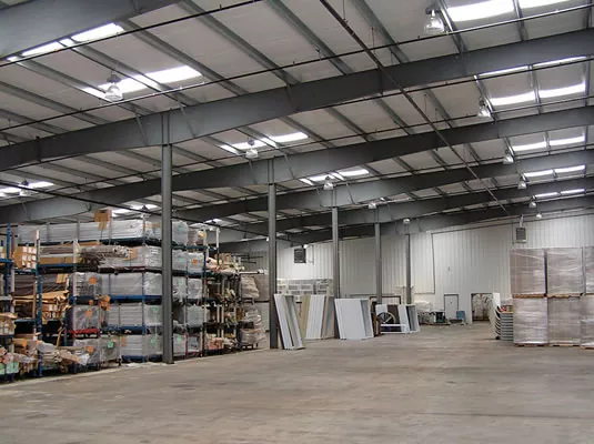 Εσωτερικά τελειώματα και συστήματα:Το εσωτερικό της αποθήκης έχει τελειώσει σύμφωνα με συγκεκριμένες απαιτήσεις, συμπεριλαμβανομένων των συστημάτων δαπέδων, φωτισμού, εξαερισμού και πυροπροστασίας. Μπορεί επίσης να εγκατασταθεί εξειδικευμένος εξοπλισμός, όπως ράφια αποθήκευσης και μεσοπάνες, για τη βελτιστοποίηση της λειτουργικής αποτελεσματικότητας.