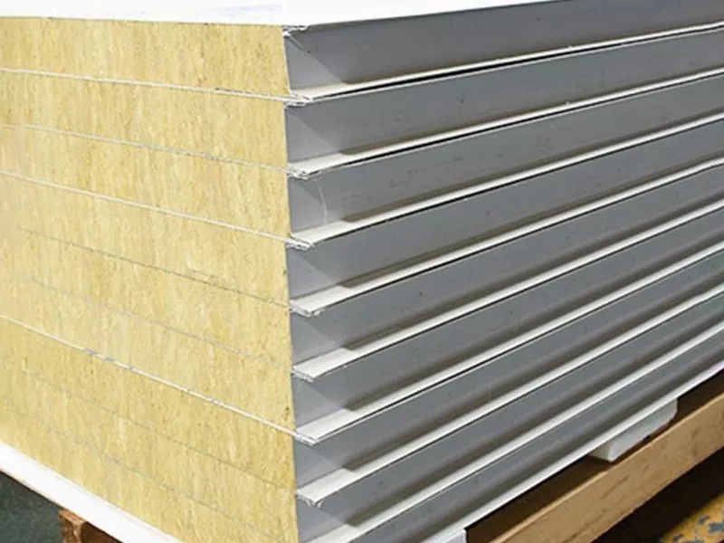 1、Εξαιρετική θερμομόνωση: Ο πυρήνας από πετροβάμβακα του πάνελ σάντουιτς παρέχει ανώτερη θερμομόνωση, διατηρώντας αποτελεσματικά μια άνετη εσωτερική θερμοκρασία και μειώνοντας την κατανάλωση ενέργειας για θέρμανση και ψύξη.
