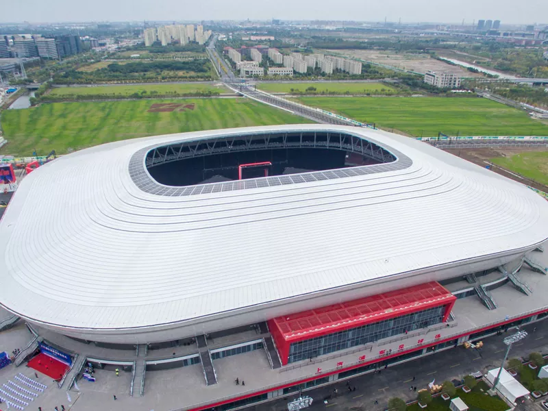3. Η κύρια δομή υιοθετεί ένα σύστημα χωρικής δοκού ή πλέγματος μεγάλου μεγέθους, δημιουργώντας ένα ανοιχτό χώρο χωρίς στήλη, εξασφαλίζοντας ανεμπόδιστες προβολές για όλους τους θεατές και την ικανότητα να καλύπτει μια υπερ-μεγάλη οροφή για να ικανοποιήσει τις απαιτήσεις χρήσης όλων των καιρού.